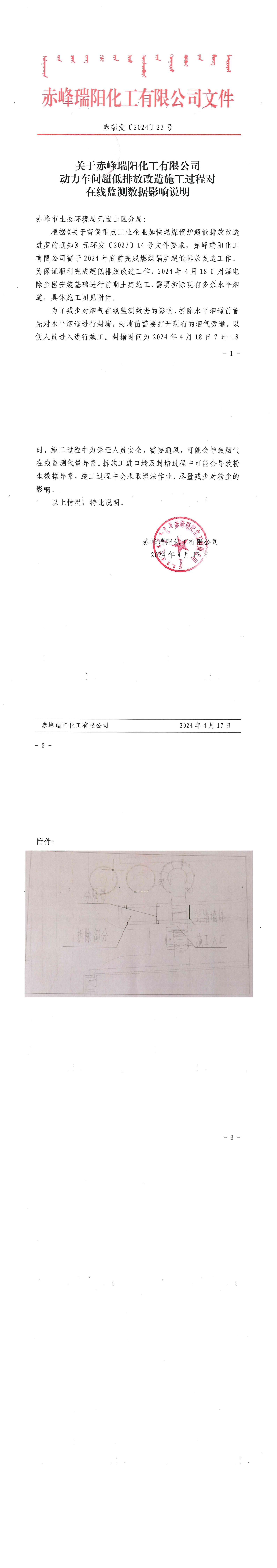 赤瑞發(fā)〔2024〕23號(hào):動(dòng)力車間超低排放改造施工過程對(duì)在線監(jiān)測數(shù)據(jù)影響說明