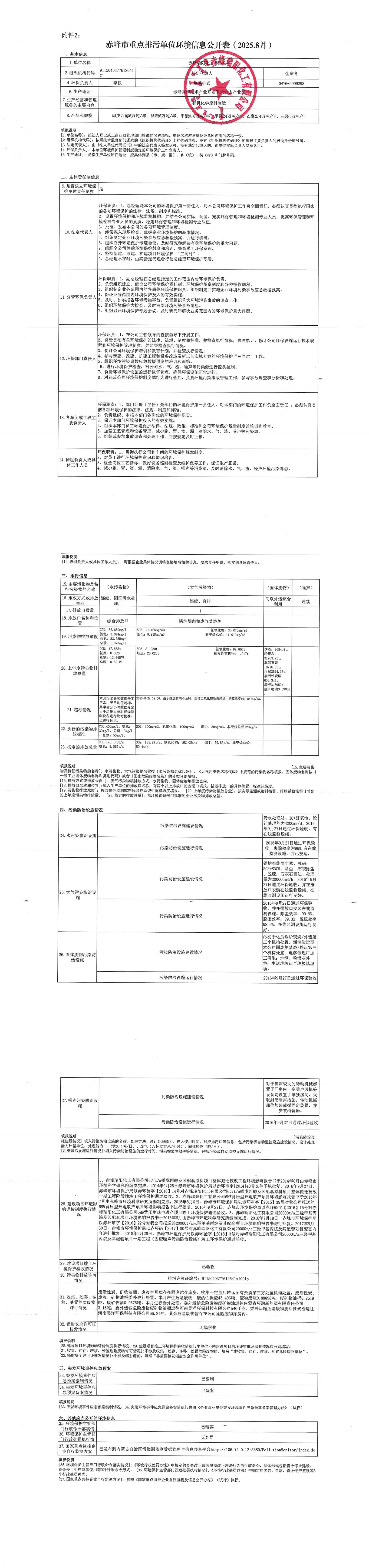 赤峰市重點(diǎn)排污單位環(huán)境信息公開表【2025.08】